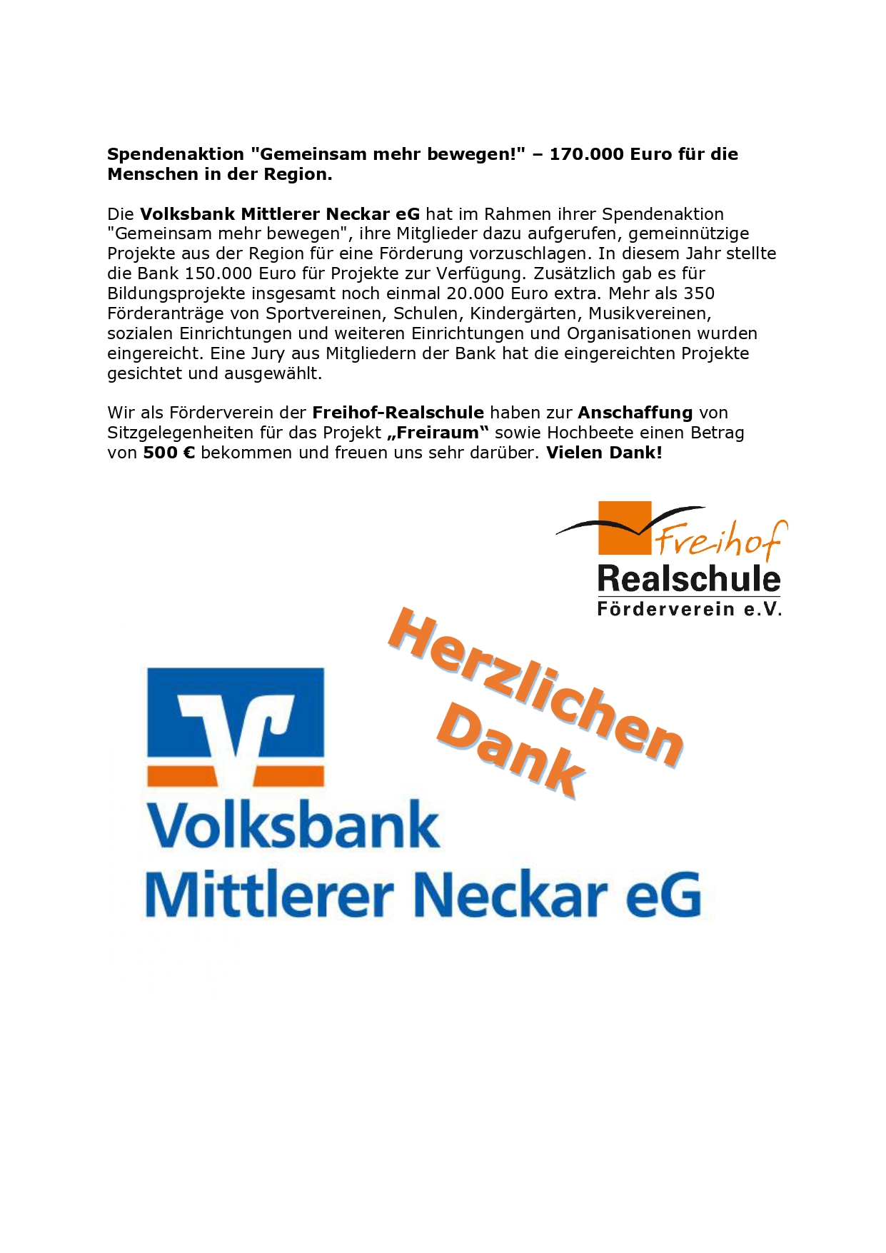 Herzlichen Dank an die Volksbank – Spendenaktion „Gemeinsam mehr bewegen“
